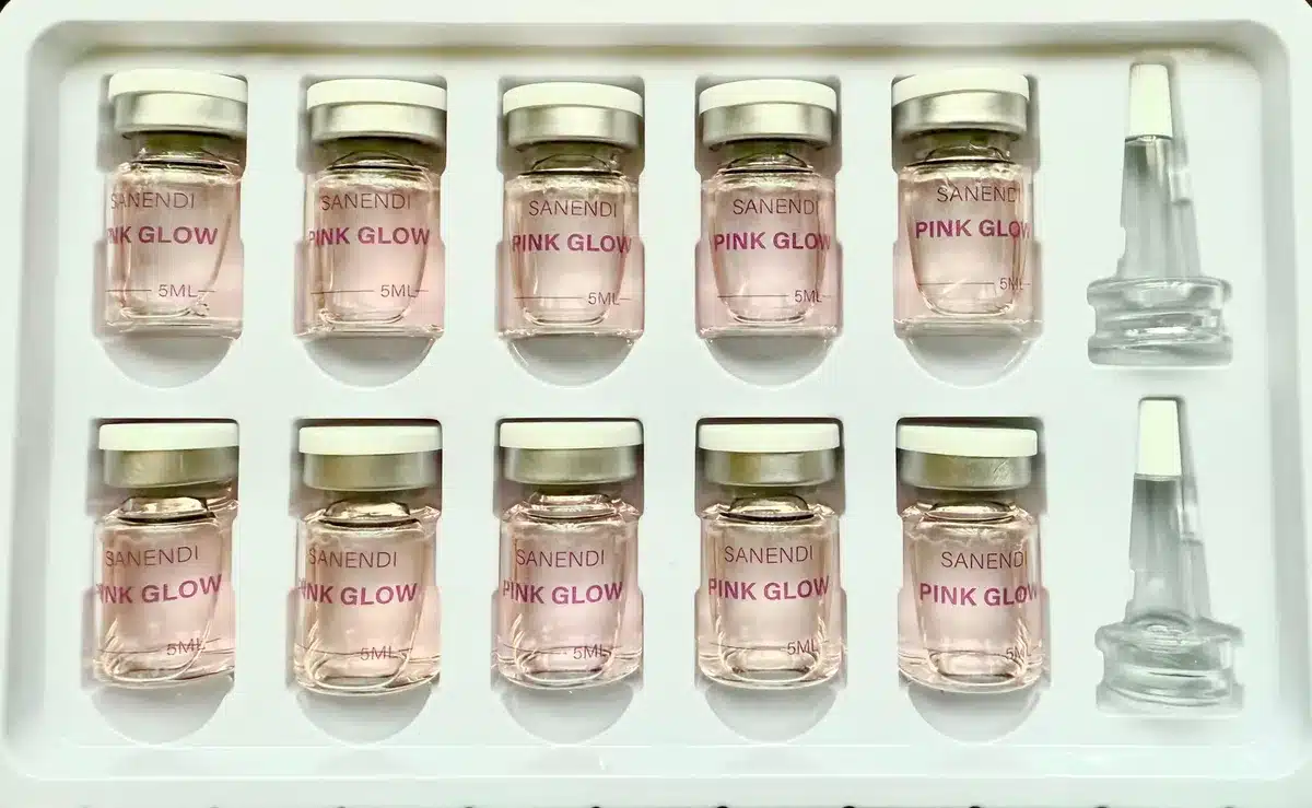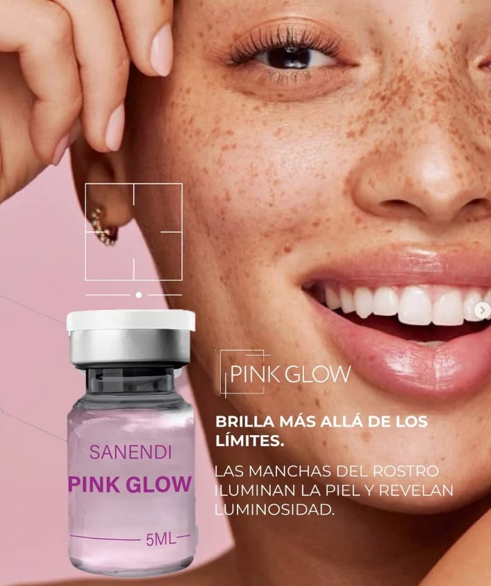 Pink Glow de Sanendi es un tratamiento profesional de mesoterapia formulado para mejorar visiblemente el tono, la textura y la luminosidad de la piel. Su avanzada combinación de péptidos, aminoácidos, vitaminas y glutatión trabaja en profundidad para unificar el tono, revitalizar tejidos y aportar un efecto glow saludable.