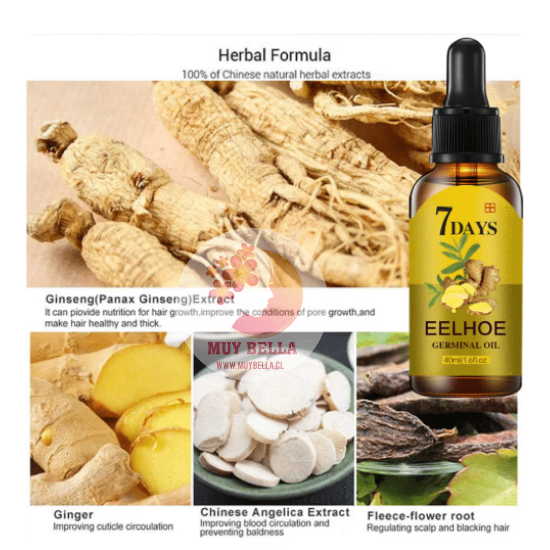 Gracias a su combinación de extracto de jengibre, vitamina B, ginseng, raíz de artemisa, extractos de plantas naturales y aceite de semilla de uva, este tratamiento nutre profundamente los folículos pilosos, estimula la circulación del cuero cabelludo y fortalece el crecimiento de un cabello más abundante, fuerte y saludable.